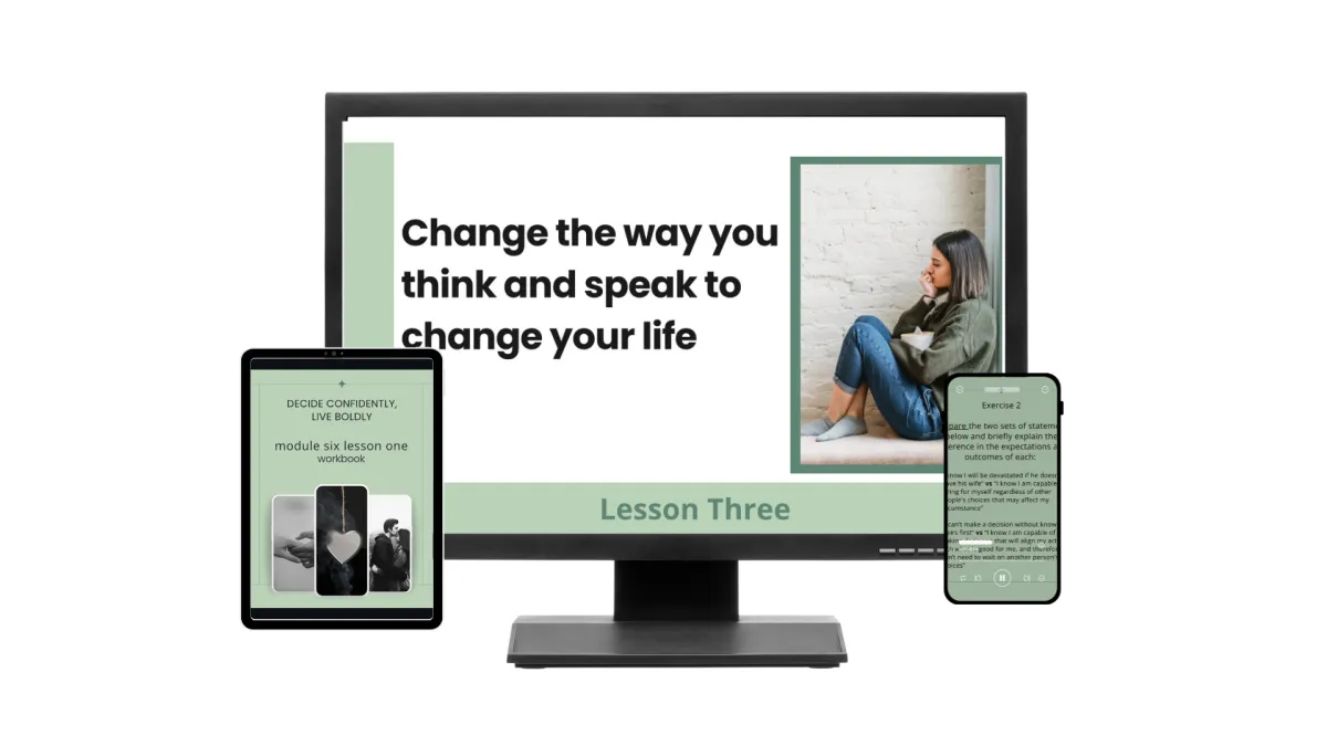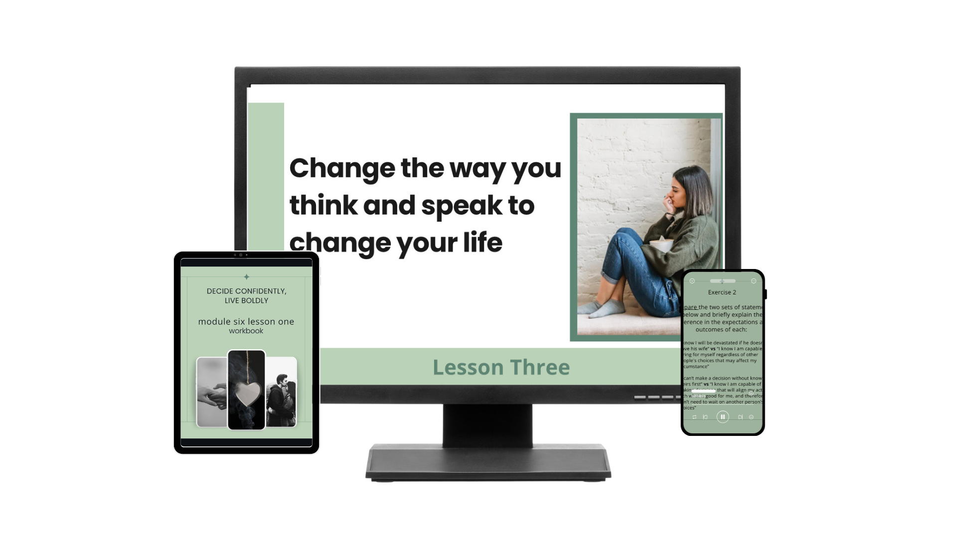 When you enroll in the course, THE POWER OF WORDS, you’ll gain access to 1 hour of video with four pre-recorded lessons that will guide you through your affair with grace.
